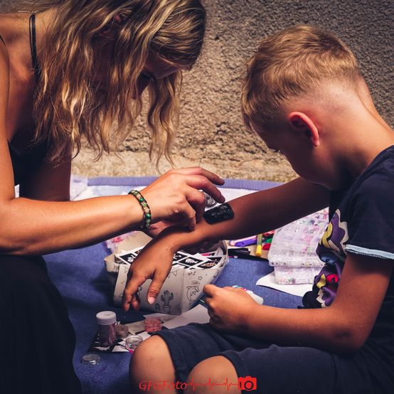Wir waren auch direkt unterwegs, um Kindern unsere Idee näherzubringen – unter anderem im Kindergarten Sachsenburg und im Integrationszentrum Seebach. Gemeinsam mit den Kindern haben wir Steine bemalt, gelacht und kreative Stunden verbracht.